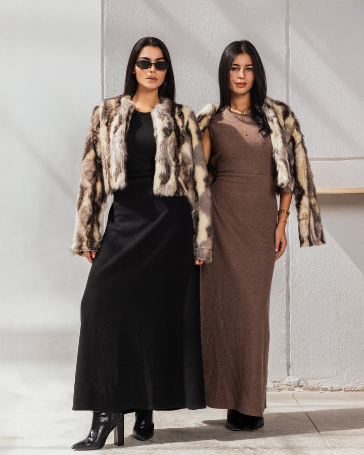 A chic winter set featuring a short Italian faux fur jacket paired with a long soft Turkish wool dress — perfect for an elegant and cozy winter look. ❄️